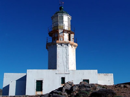This lighthouse was manufactured in 1891. The altitude of tower is 19 metres and the height of focal plane is 184 metres. The access to the lighthouse becomes roadly from Saint Stefano. The mechanism of first lamp of 'Armenistis' is exposed outside by the building of Aegean Naval Museum that is located in a traditional building of 19th century, in centre of Mykonos, near to place Three Wells (Tria Pigadia). |