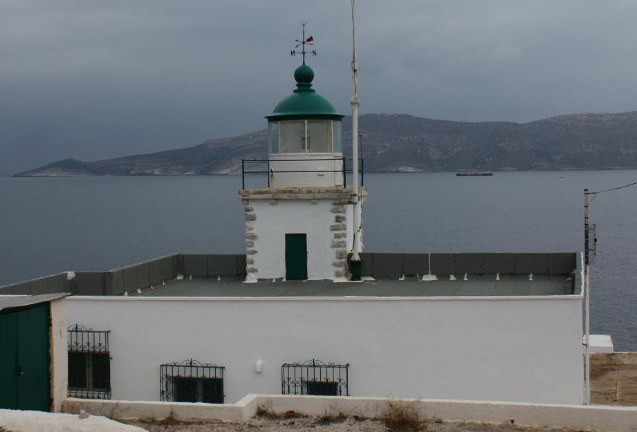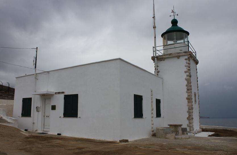 This lighthouse was manufactured in 1892. The altitude of tower is 7 metres and the height of focal plane is 23 metres. This lighthouse located about 5 km north of Lavrio in Attica.