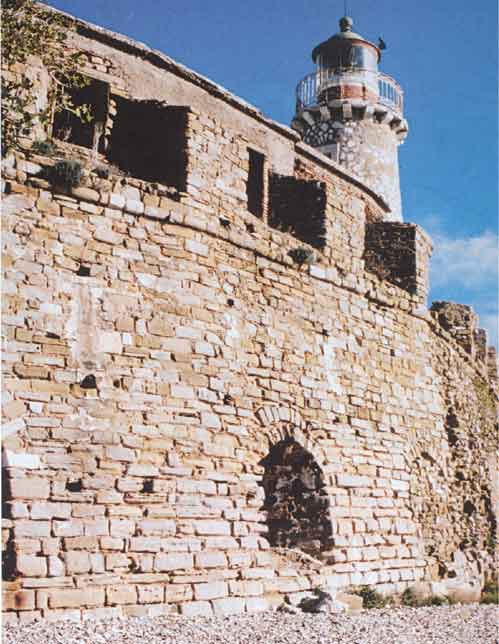 Ο φάρος αυτός κατασκευάστηκε το 1880. Το ύψος του πύργου του ειναι 9 μέτρα και τό εστιακό του ύψος είναι 15 μέτρα. Βρίσκεται στην άκρη του λιμανιού πάνω σε έναν κυλινδρικό πύργο στο κάστρο του Αντιρίου ακριβώς εκεί που δένουν τα πλοία. |